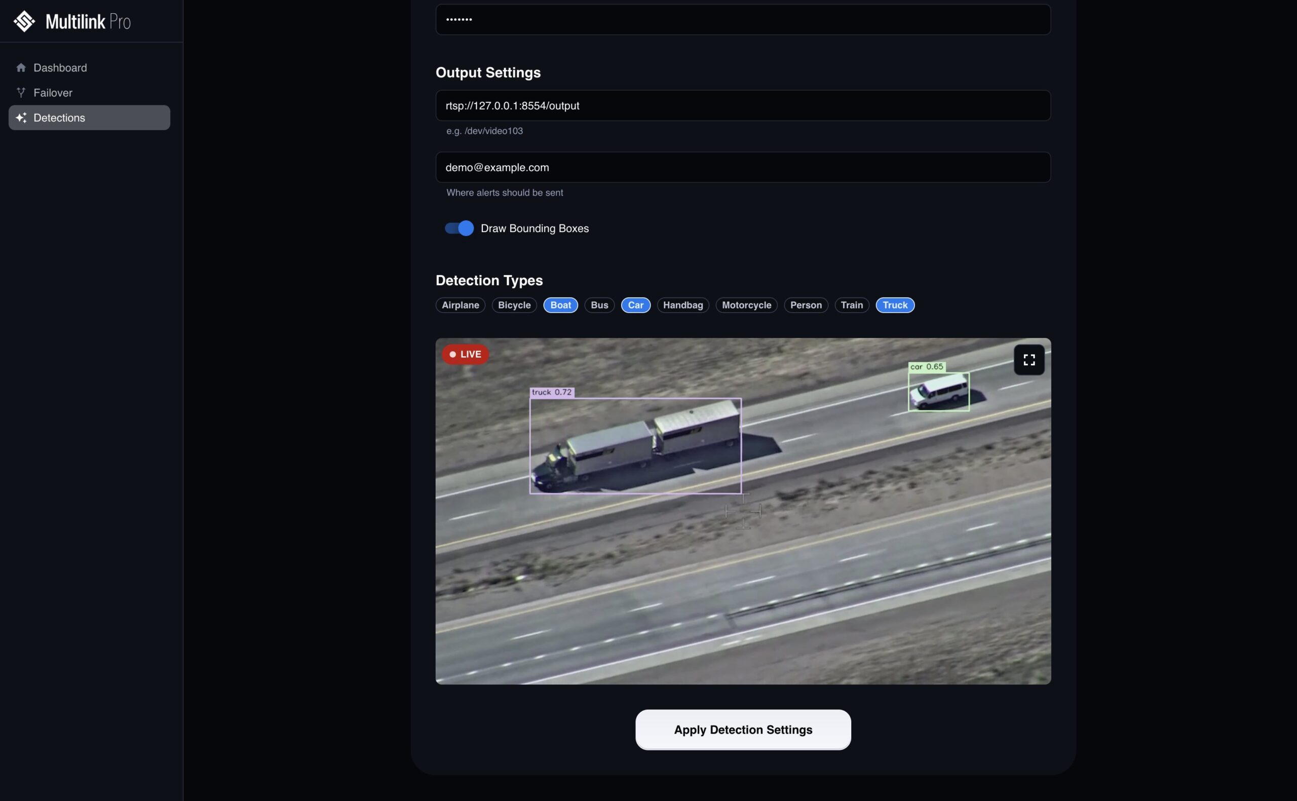 - Edge Processing — AI-assisted functions such as video compression and object detection reduce bandwidth load and latency, notifying the user with each detection event.