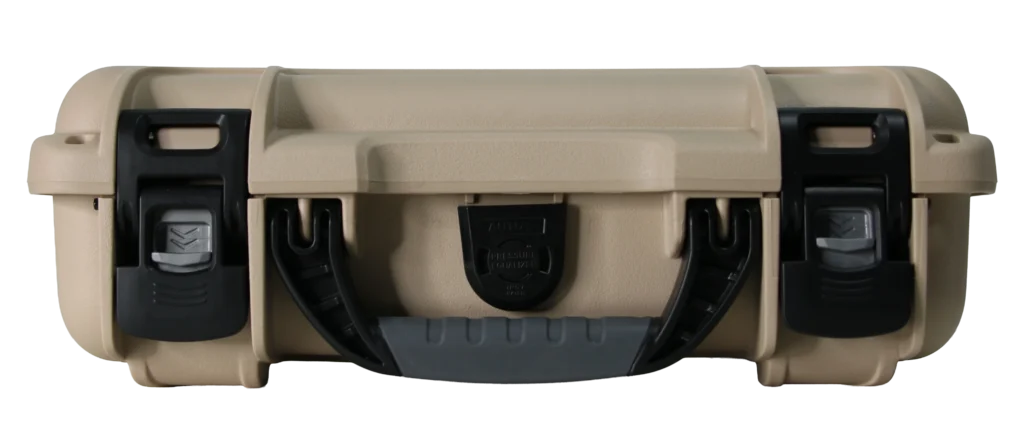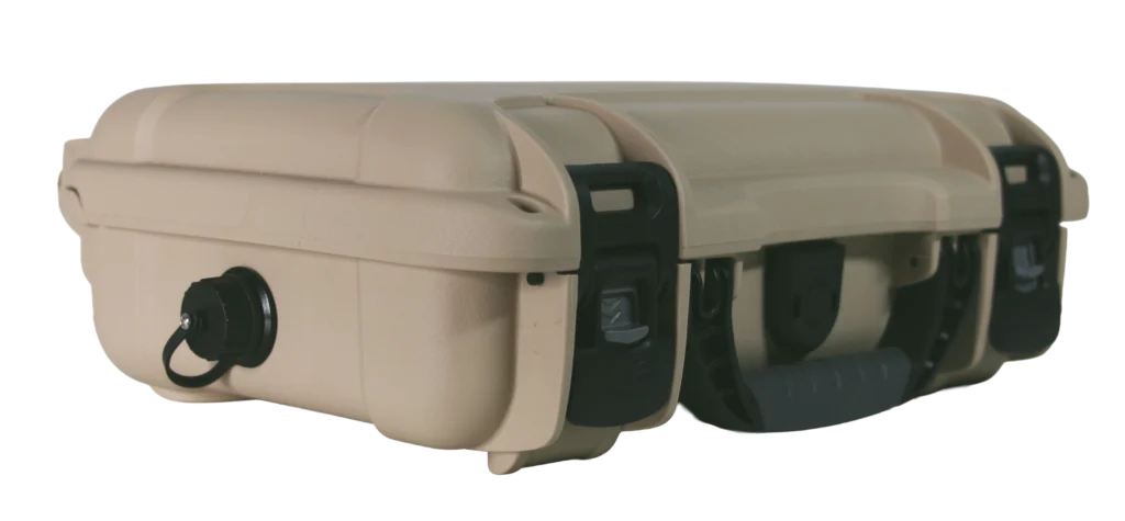 A low-profile antenna is built into the case lid, allowing the system to be used open or closed. This reduces snag points, protects sensitive components, and provides deployment flexibility.
