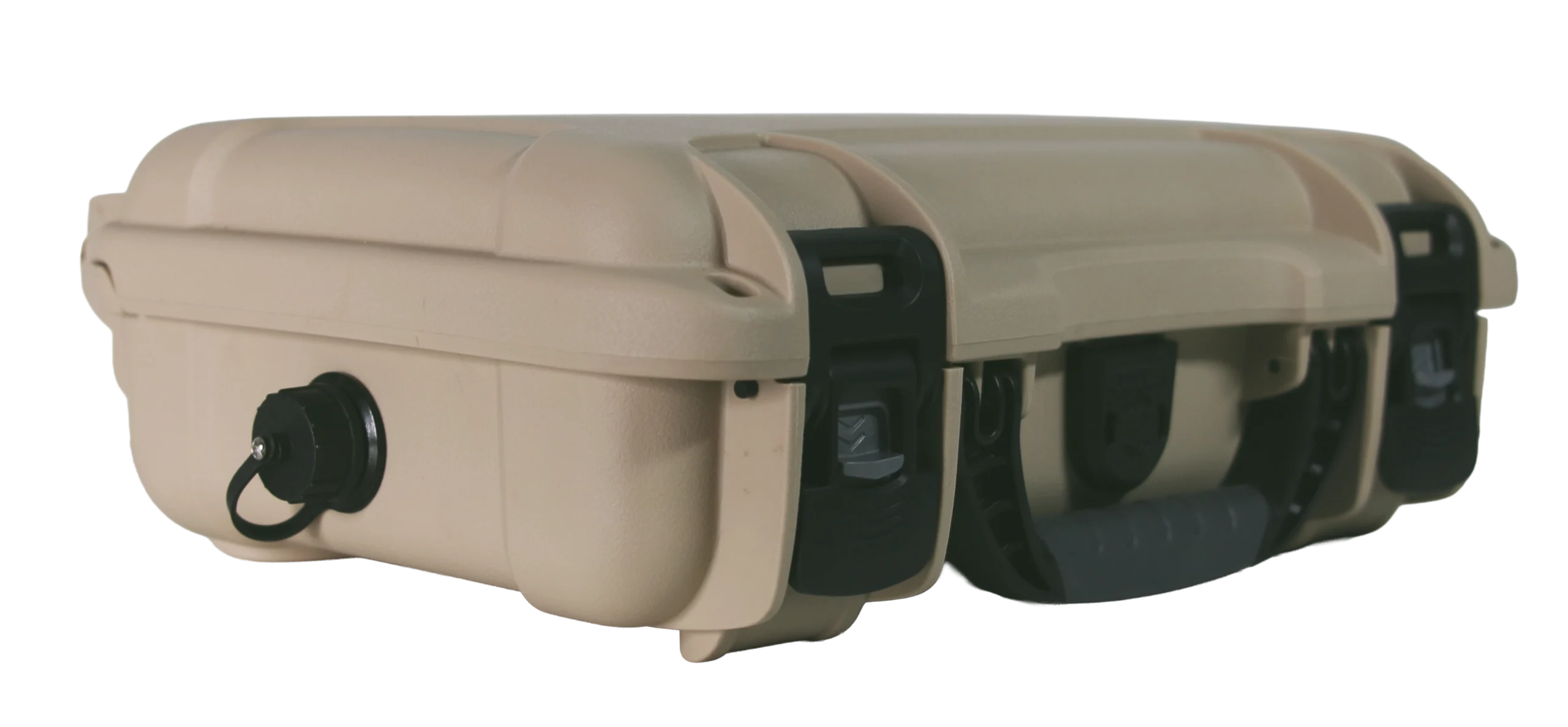 A low-profile antenna is built into the case lid, allowing the system to be used open or closed. This reduces snag points, protects sensitive components, and provides deployment flexibility.